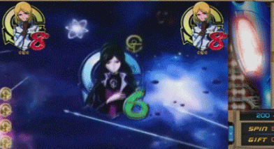 a은하계에서 숫자가 X자로 교차되면서 순서대로 지나가고 많은 빛들이